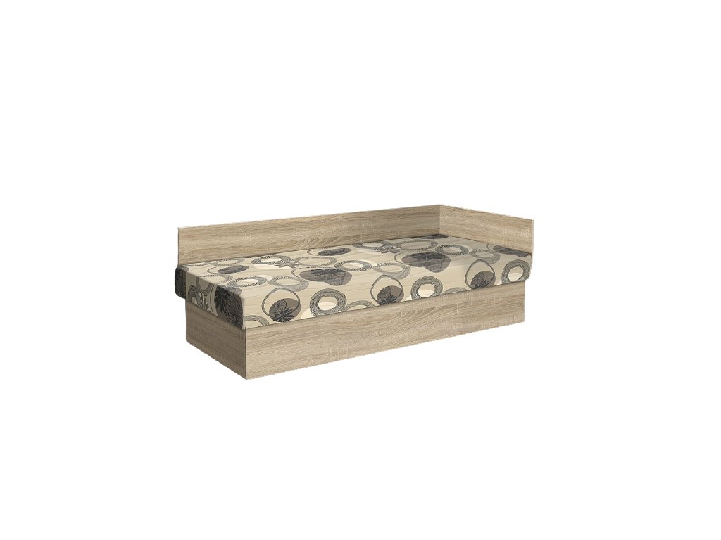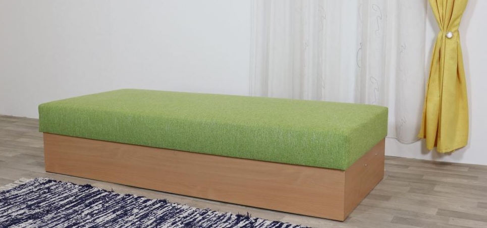 Atypická válenda s pevně začalouněnou matrací a úp z lamina