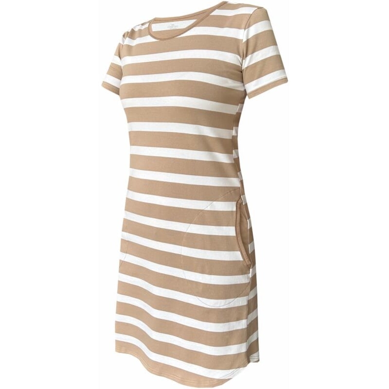 Bavlněné dámské šaty na léto v béžovobílé barvě, s praktickými kapsami
