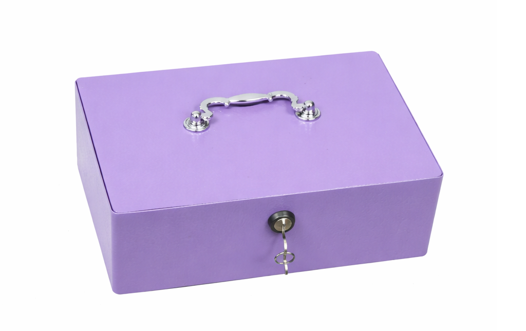 Bezpečnostní pokladnička na bankovky a mince – fialová, skladem