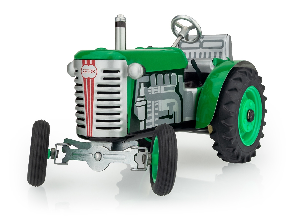 Pohyb traktoru zajišťuje unikátní pérový strojek natahovaný klíčkem. Funkční převodovka má 3 rychlosti dopředu a zpátečku. Traktor lze volantem skutečně řídit a navíc ho i zabrzdit ruční brzdou. Měřítko 1:25.