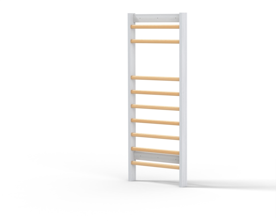 Dřevěné žebřiny do dětského pokoje AmyMateriál: zdvojené lamino 3,6 cm v kombinaci s masivními žebřinami,0,2cm ABS hrana.Rozměry: výška: 200 cm šířka: 80 cm hloubka: 10 cm