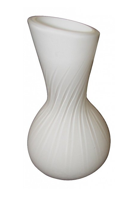 Elegantní váza malá baňka - bílá s designovými vroubky. Vhodná do interiéru i venkovních prostor. Nádherná hra barev zaujme každého. Skvělý design a ruční propracování! Originální kus.