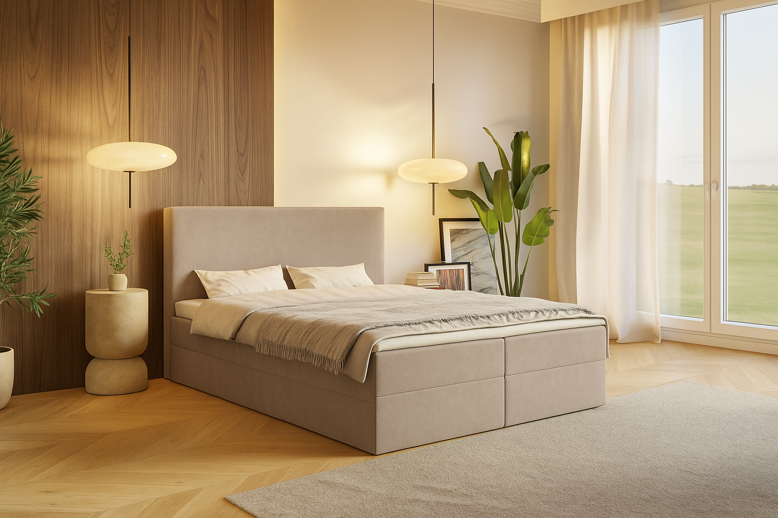 Jednoduchá elegantní zvýšená manželská postel, výška 123 cm