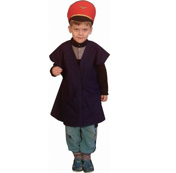 Výpravčí - kostým (sako, čepice) je vyroben ze 100% bavlněné látky. Lze prát při teplotě do 30°C. Vhodné pro děti předškolního věku.Velikost: 3 - 6 let