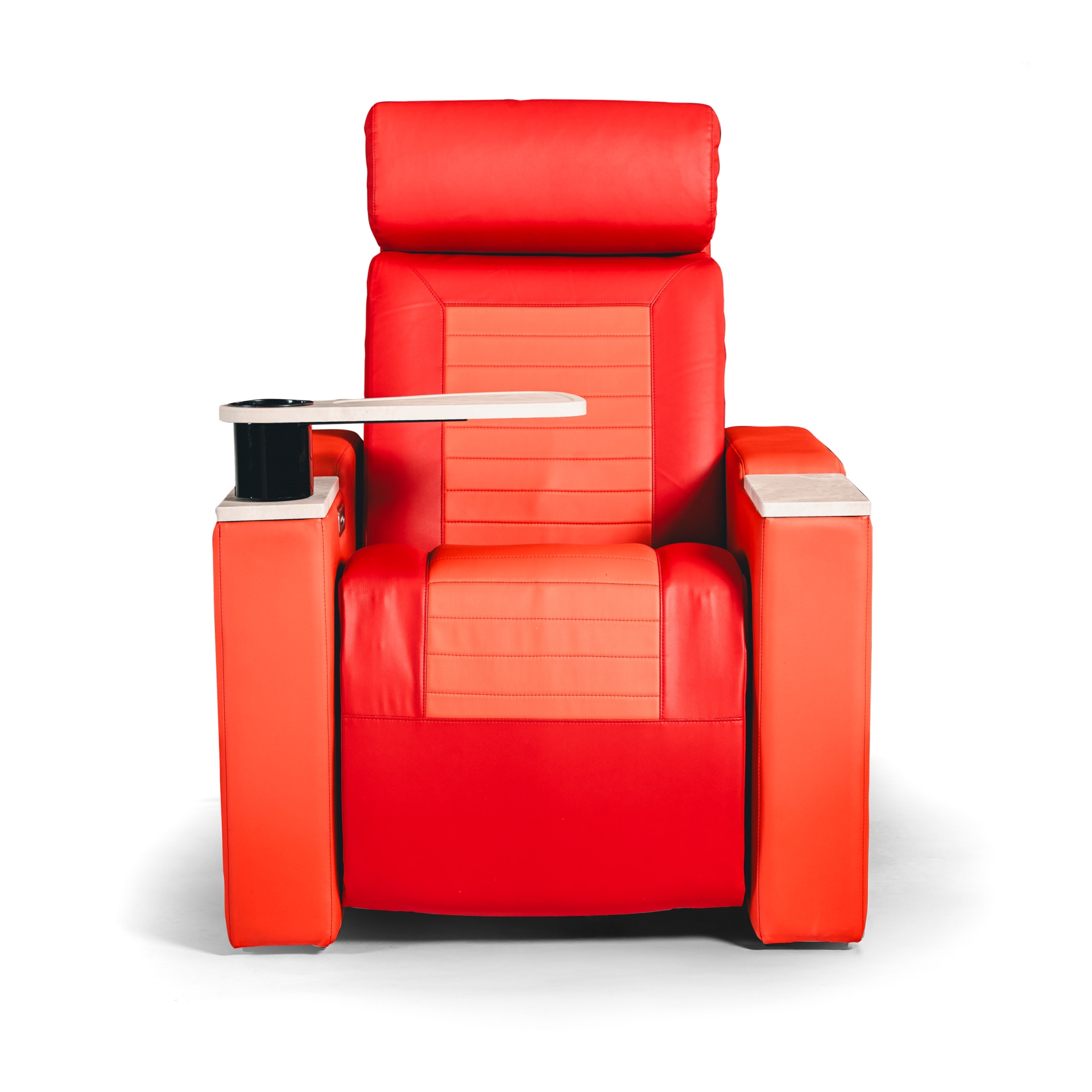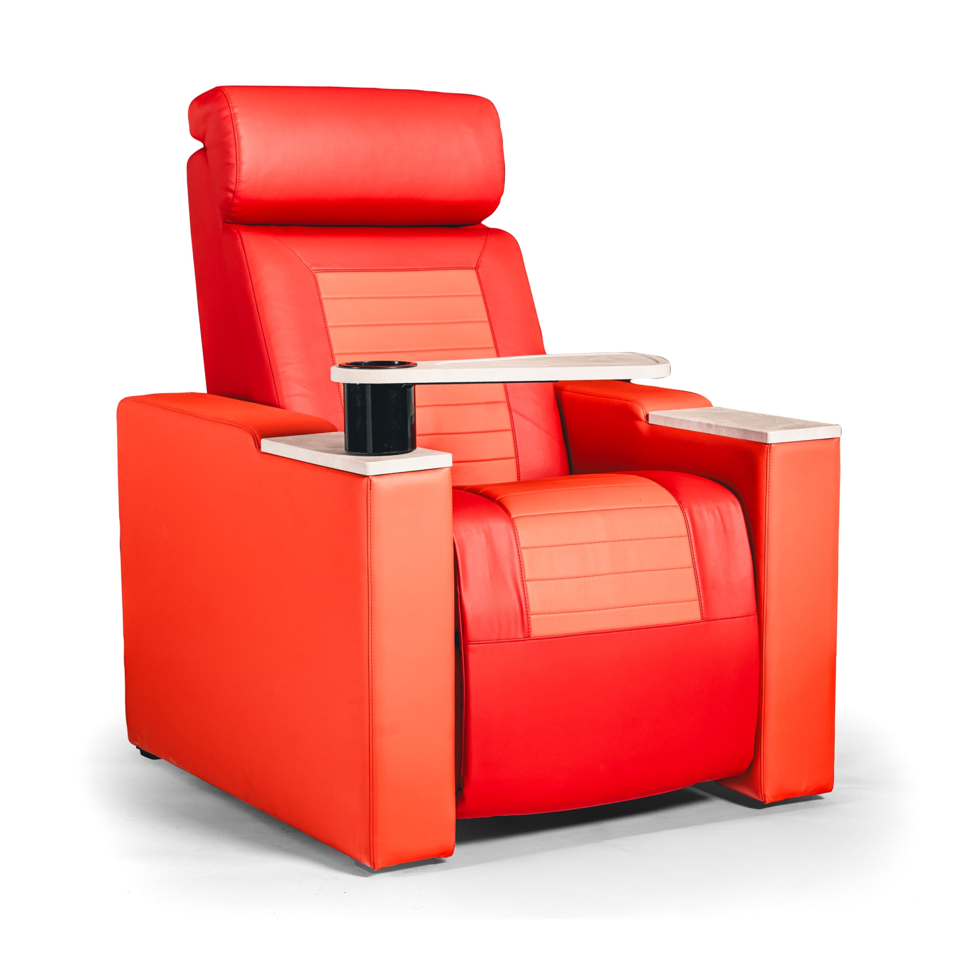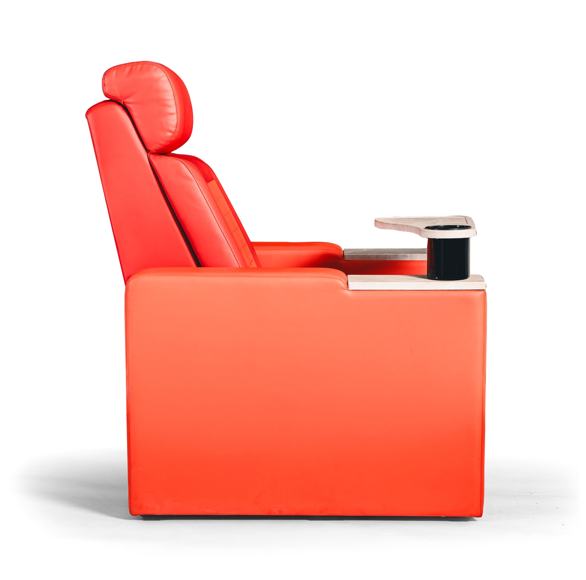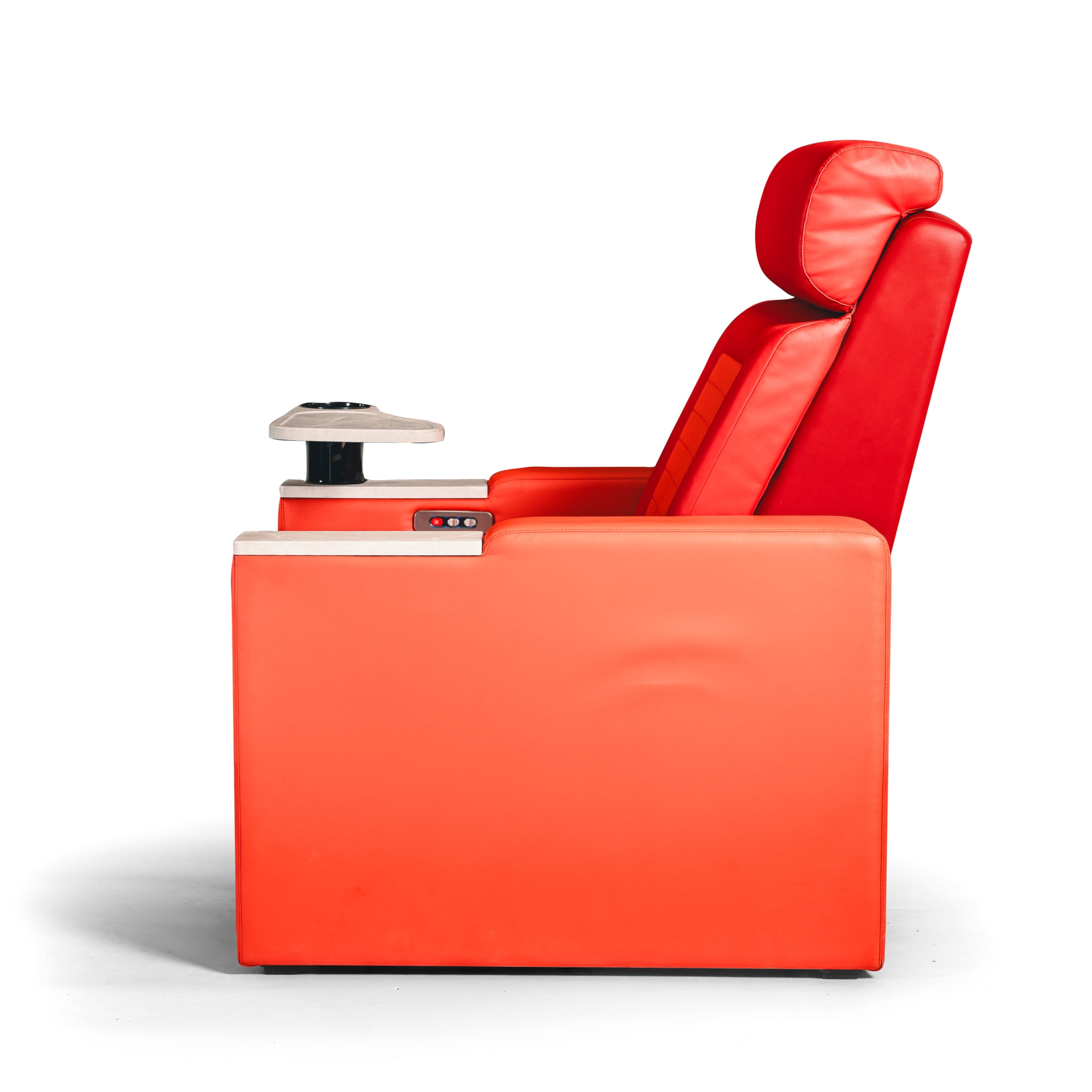 Polohovatelná kinosedačka je navržena pro prémiové řady a VIP zóny, kde je prioritou maximální komfort. Díky možnosti sklopit opěrák a vysunout podložku pro nohy si může divák nastavit polohu od klasického sedu až téměř k relaxační poloze, ideální pro dlouhé projekce a pohodové „ležérní“ sezení.
