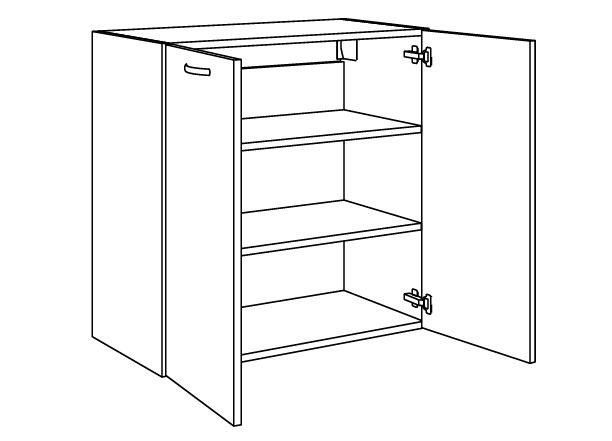 Krycí desky: laminovaná dřevotříska 18 mm nebo 25 m, odolná ABS. U spodních skříněk je překrytí krycí deskou povinné