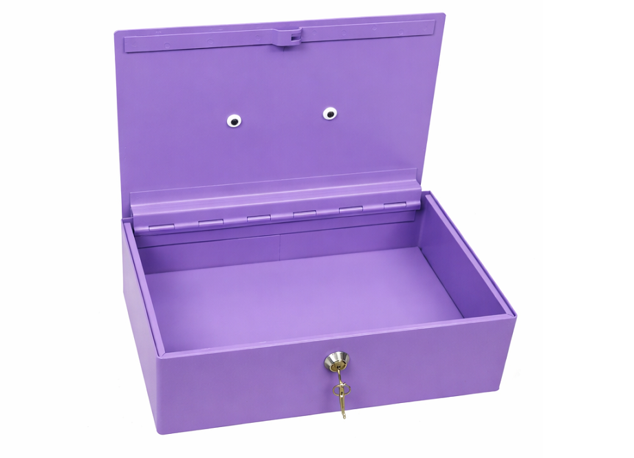 Pokladní box na hotovost a doklady, s klíčem, fialový, velký