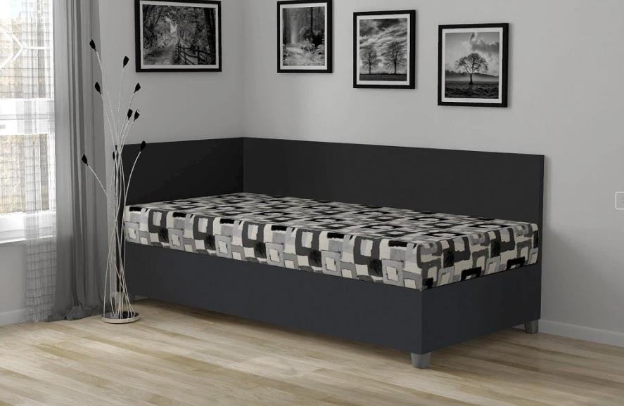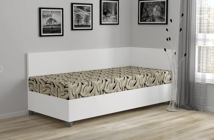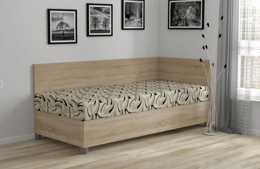 Válenda s úložným prostorem a polohovacím lamelovým roštem. Lamelový rošt (16 lamel) s možností nastavení polohy pod hlavou - 3 polohy. Čela válendy omezují zašpinění zdi zády a zároveň chrání před chladem a nepohodlím při spánku, variantu provedení čel a otočení postele si zvolíte již při nákupu.
