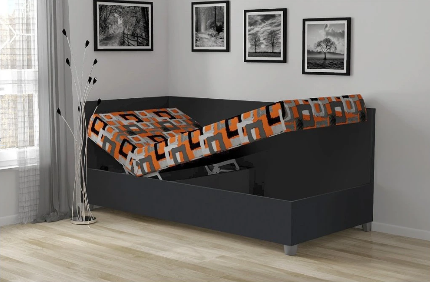 Rohová čalouněná válenda s polohovacím roštem, nosnost až 120kg