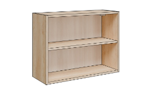 Široká bytelná horní závěsná skříňka s policí bez dvířek