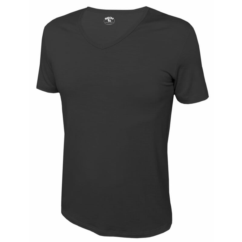 Pánské spodní tričko z merino vlny. Krátké rukávy klasického střihu, úzce olemovaný špičatý výstřih. Výrobek je vhodný jako základní spodní vrstva zejména pod formální oblečení. Díky "vé" výstřihu zůstane tričko skryto pod jakýmkoliv oblečením s rozhalenkou či výstřihem od krku. Vřele doporučujeme pod společenskou košili. Pod světlou košili lze zvolit tělový odstín trička, k tmavé košili nabízíme tričko černé.