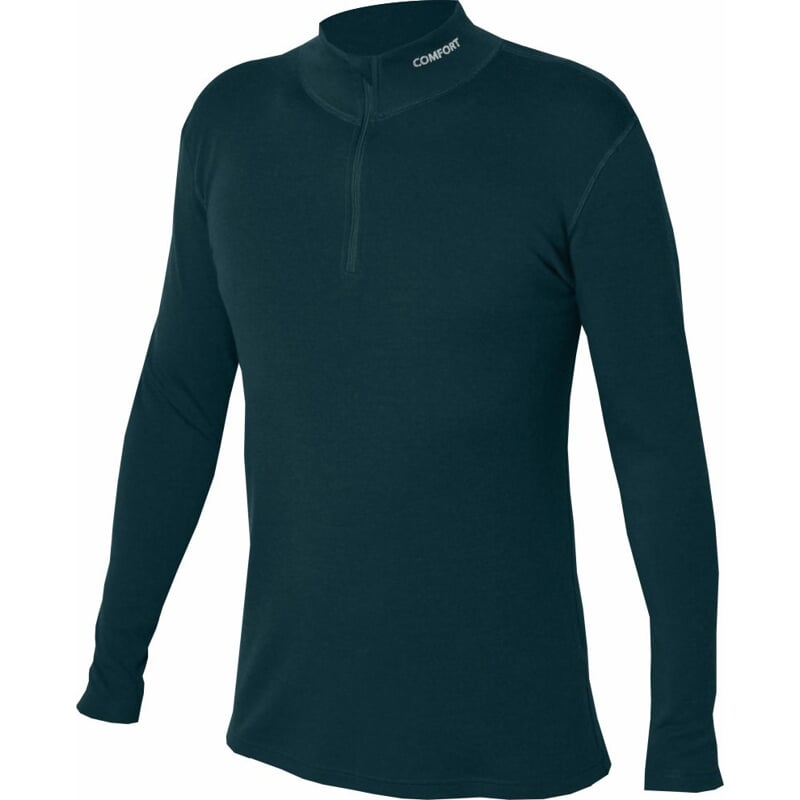 Pánské tričko z merino vlny ve vyšší gramáži. Dlouhé rukávy jsou klasického střihu. Stojáčkový límec je rozepínací, s krátkým zipem. Komfortní ploché švy v barvě úpletu.