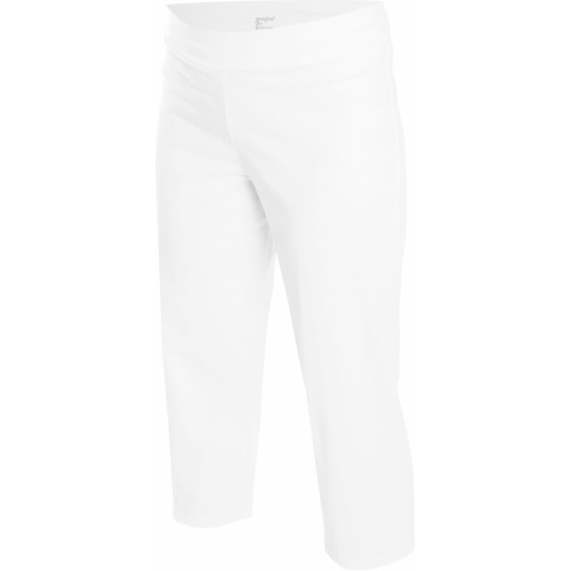Tříčtvrteční kalhoty pro ženy, vhodné ke kombinování s letními tričky z naší nabídky. Pohodlný volný střih s rovnými nohavicemi a pružným lemem v pase, podpořeným vloženou pruženkou.