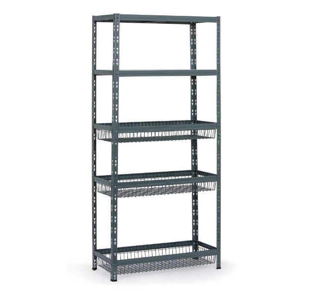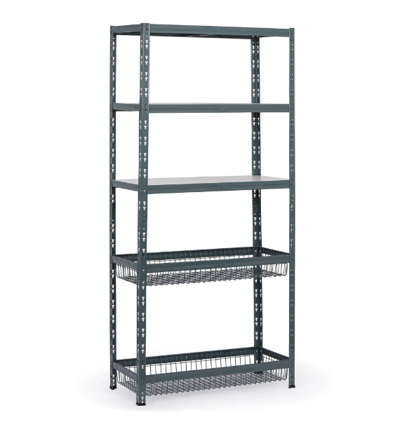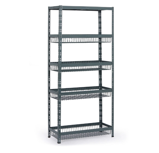 Variabilní regál s koši a policemi, výška 195 cm, šířka 90cm stabilní policový regál s koši s rychlou montáží vhodný do skladů, dílen, sklepů a garáží police... více